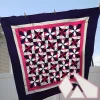 They demonstrate cutting and piecing the various unique shapes that create this dynamic pattern.