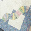 This fan quilt is a beautiful combo of a traditional Old World quilt pattern with the elegance of Victorian "crazy" quilts. Silk-like fabrics such as moire taffeta,satin, brocade or polished cotton create the fans in a rainbow of colors. Delicate embroidery creates a lace like touch to the fans' ribs - so pretty!