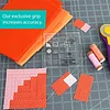 Sewing narrow strips to two adjoining sides of the center square and wide strips to the remaining two sides create the curve. Mark the wrong side of the center square through the holes on the tool to ensure a perfect seam allowance.