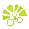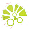 This is a versatile set of ten templates that can be mixed and matched to create dozens of Dresden Plate quilt blocks, cut tumbler, and circle shapes, AND for free-motion machine quilting with a ruler.